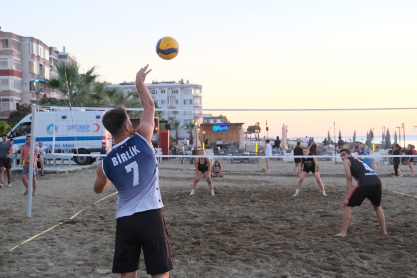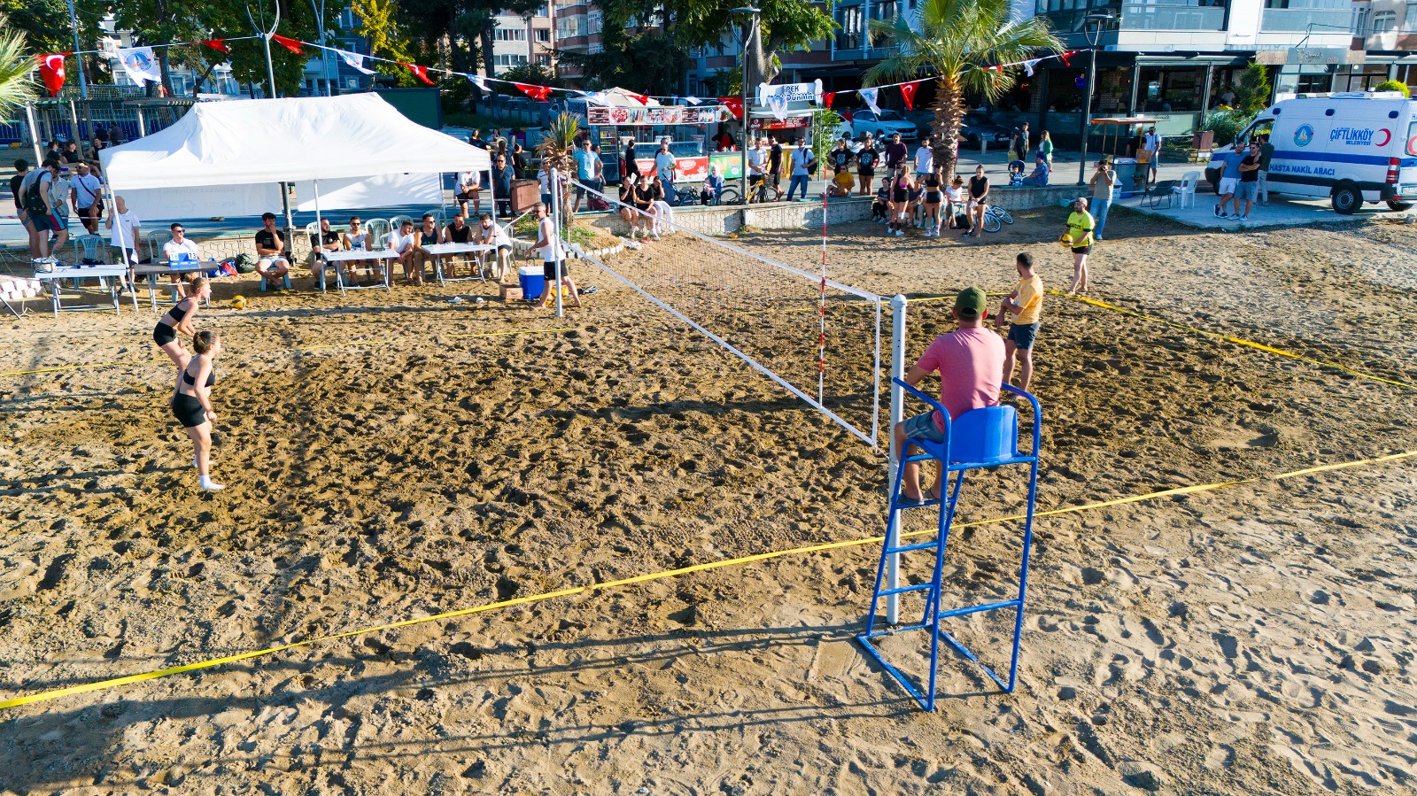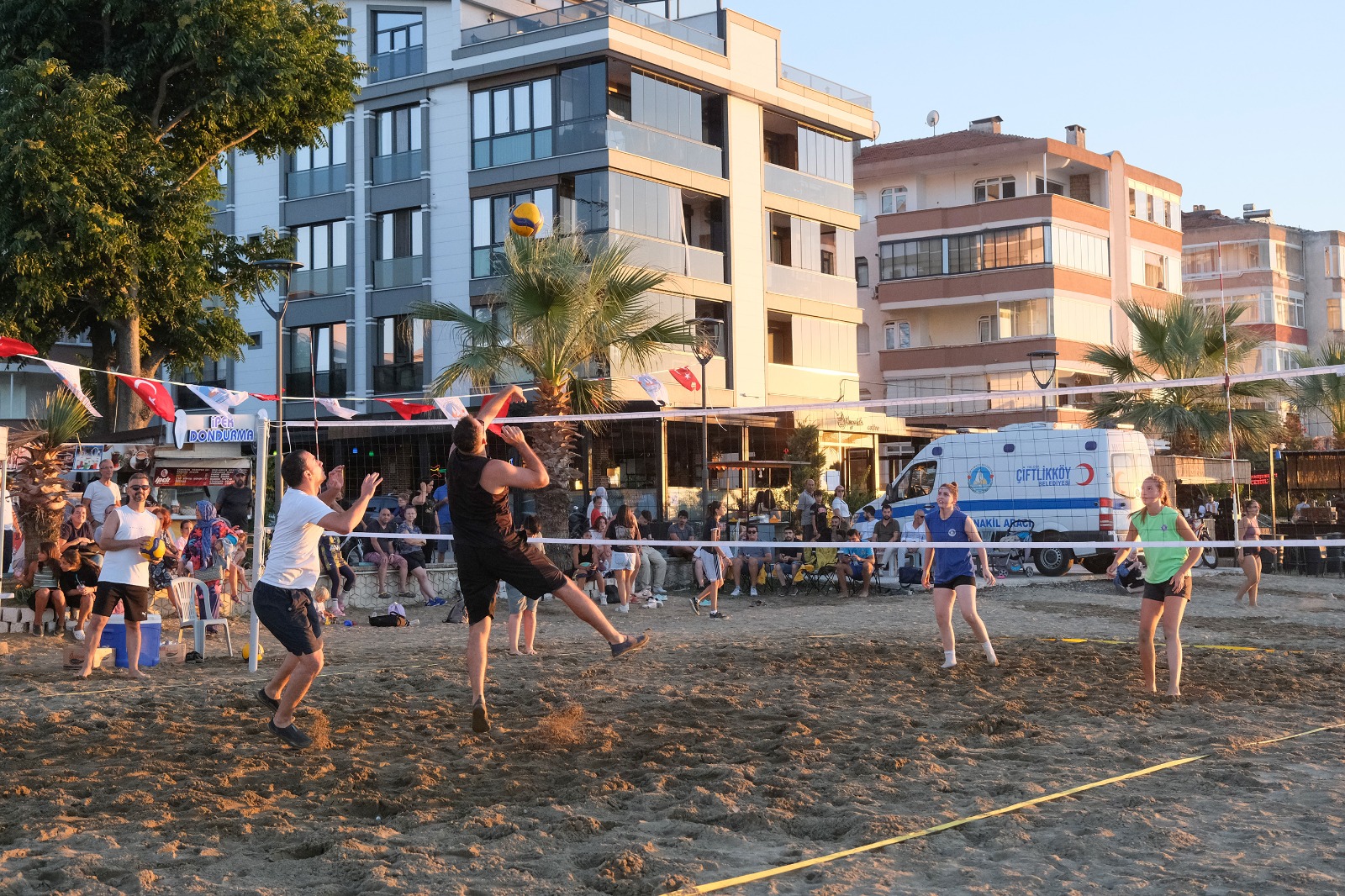 Çiftlikköy Belediyesi’nin ev sahipliğinde Mokamp Plajı’nda yapılan Plaj Voleybolu Turnuvası tüm hızıyla devam ediyor. Çiftlikköy Belediye Başkanı Adil Yele’nin açılışını yaptığı turnuvada mücadele eden 16 takımın kozlarını paylaştığı voleybol turnuvası, izleyenlere keyifli anlar yaşatıyor.