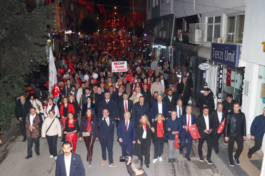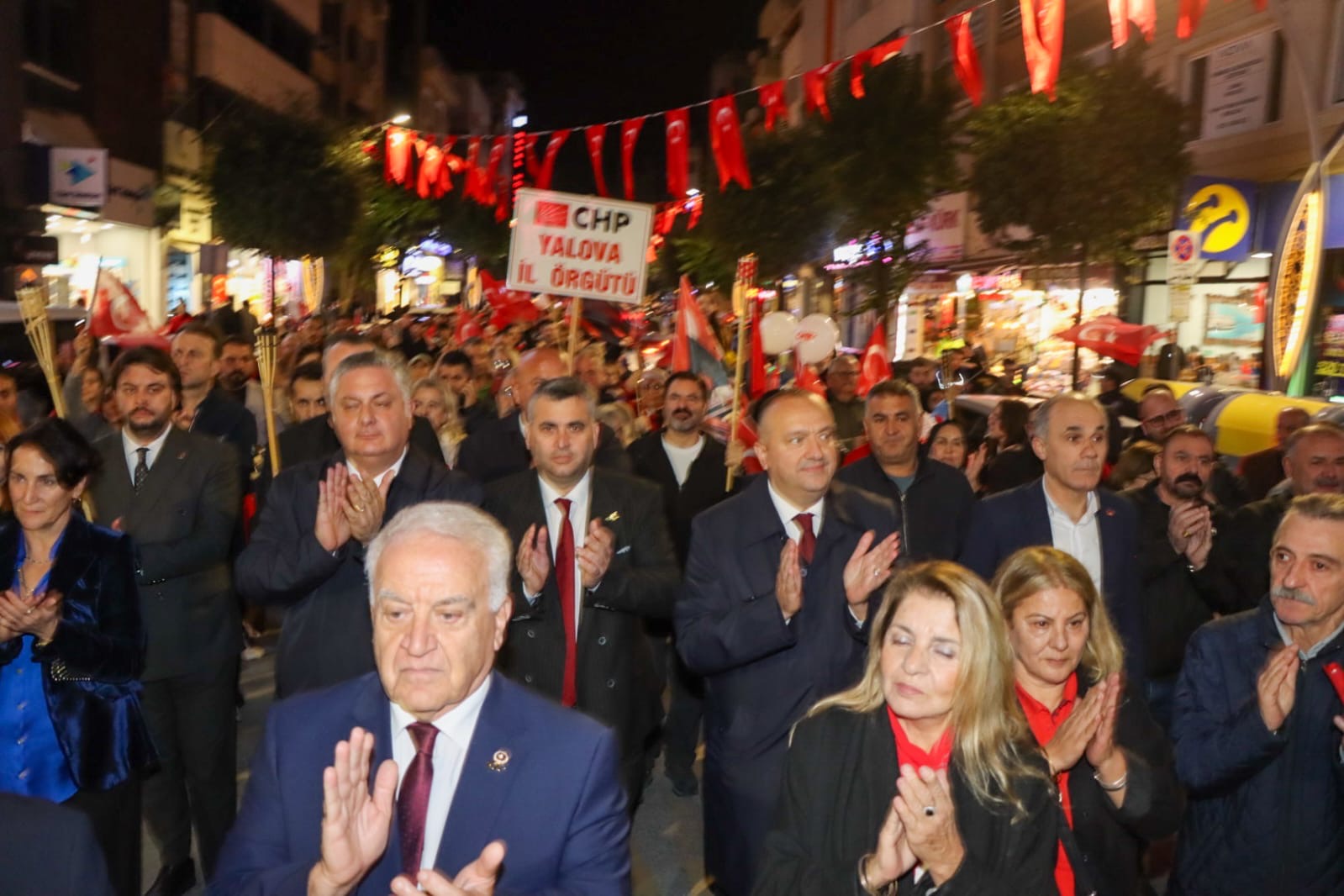 Cumhuriyet Halk Partisi’nin düzenlediği “Cumhuriyet Yürüyüşü” binlerce kişiyi Türk bayrağı altında topladı. Cumhuriyet Meydanı’nda sona eren yürüyüşte binlerce Yalovalı meşaleler ve balonlarla yürüdü.