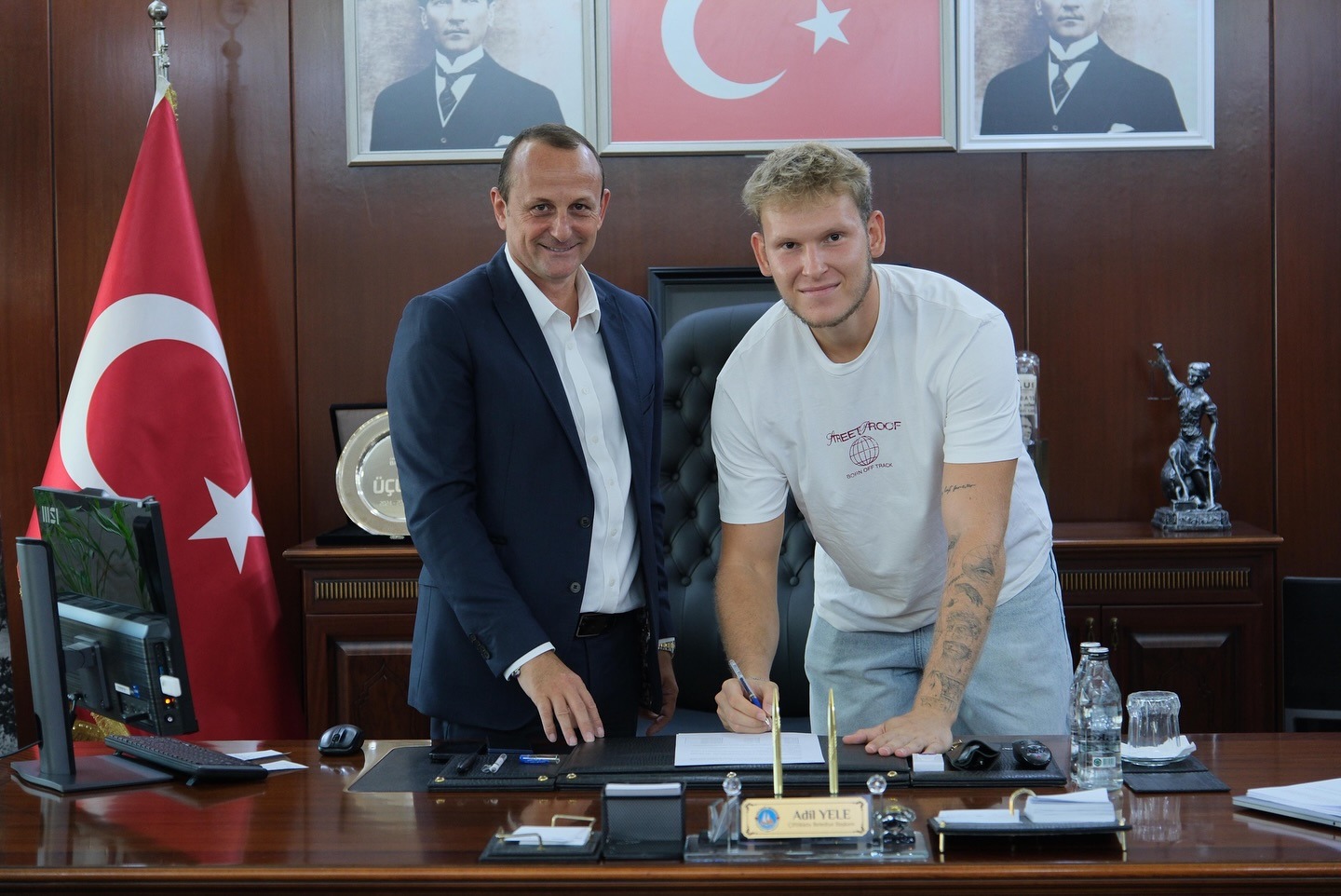Yele, “Belediyespor Basketbol A Takımımızı yeni sezona güçlü bir kadroyla hazırlıyoruz. 12 yeni transferimiz, 1 sözleşme yenileyen oyuncumuz ve 5 teknik ekibimizle birlikte imzaları attık. Yeni sezonda hedefimiz daha mücadeleci ve daha güçlü bir Çiftlikköy Belediyespor. Parkedeki tüm maçlarımızda inançlı ve dirençli bir takım olacağımıza inanıyorum. İnşallah başarılı bir sezon geçireceğiz” diye konuştu. Basketbol Şube Sorumlusu Selçuk Akgül de, Başkan Yele’ye takıma her zaman destek olmasından dolayı teşekkür ettiklerini söyledi.