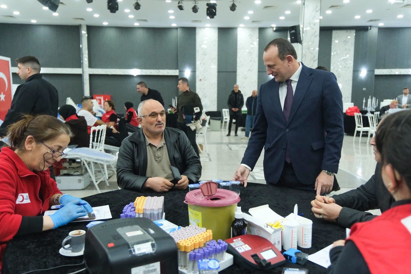 ‘Kan Bağışı Hayat Kurtarır’ sloganıyla Ramazan öncesinde kan stoklarını güçlendirmek amacıyla Belediye Düğün ve Konferans Salonu’nda yapılan kampanyaya Çiftlikköy Belediye Başkanı Adil Yele ve İlçe Kaymakamı Ali Ada da katılarak destek verdi.
