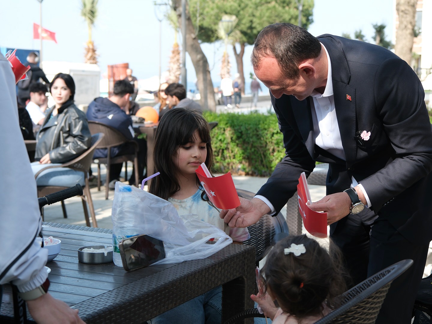 Sosyal tesislerde vatandaşlarla bir araya gelen Başkan Yele, çocuklara 23 Nisan Ulusal Egemenlik ve Çocuk Bayramı anısına Türk bayrakları ve horoz şekerler hediye etti. Gazi Mustafa Kemal Atatürk’ün tüm dünya çocuklarına armağan ettiği bu anlamlı günü büyük bir coşkuyla kutladıklarını belirten Başkan Yele, “Sosyal tesislerimizde hemşerilerimizle ve neşe kaynağımız olan evlatlarımızla buluştuk. Bayraklarımızı ve şekerlerimizi dağıtarak yüzlerindeki gülümsemeye ortak olduk. Çocuklarımızın neşesiyle dolup taşan bir 23 Nisan yaşadık” dedi.