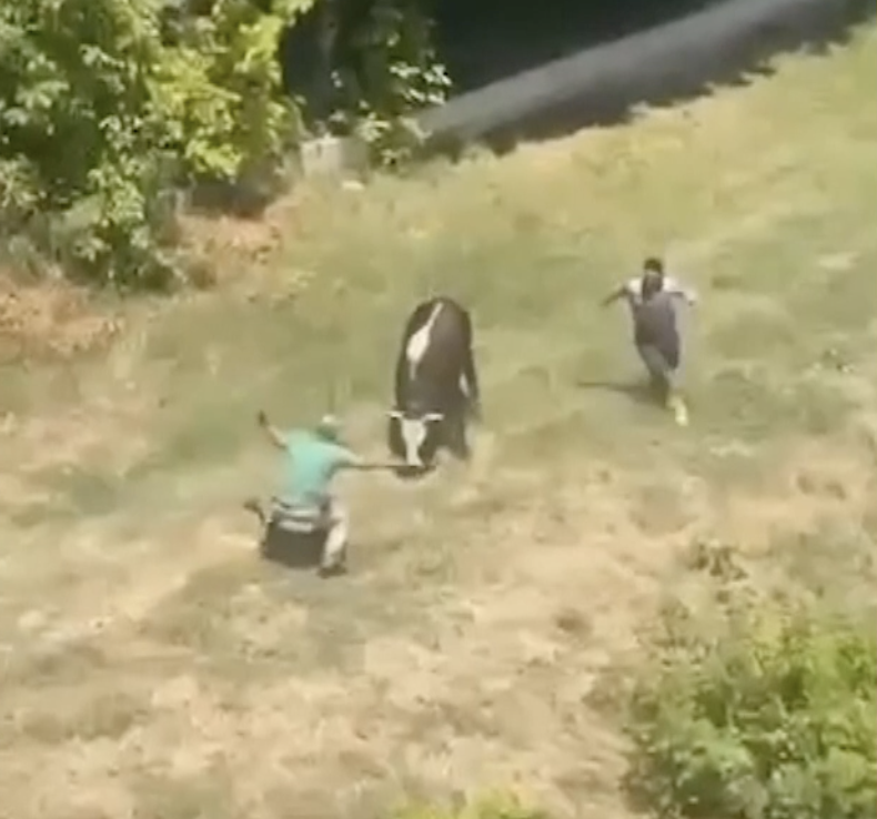 Yaklaşık 15 dakikalık kovalamacanın ardından boğa, sahipleri tarafından yakalandı.