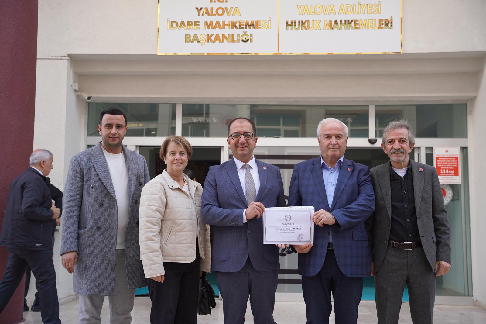 Çiftlikköy, Çınarcık, Merkez ve Termal ilçe başkanlarının da yer aldığı kalabalık bir grupla İl Seçim Kurulu’ndan mazbatasını alan Doğancı, kongre sürecinde destek veren ve vermeyen herkese teşekkür etti. Doğancı, sosyal medya hesabından yaptığı açıklamada, “Yeni bir döneme bugün resmen başladık.