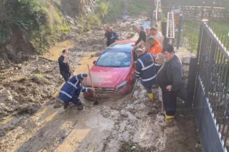 Esenköy’de Çamura Saplanan Araç 3 Saat Sonunda Kurtarıldı