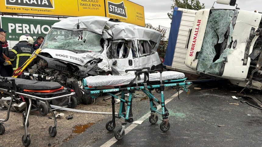 Tekirdağ’ın Ergene ilçesinde kamyonet ile işçileri taşıyan servis minibüsünün çarpıştığı kazada 3 kişi öldü, 9 kişi yaralandı.
