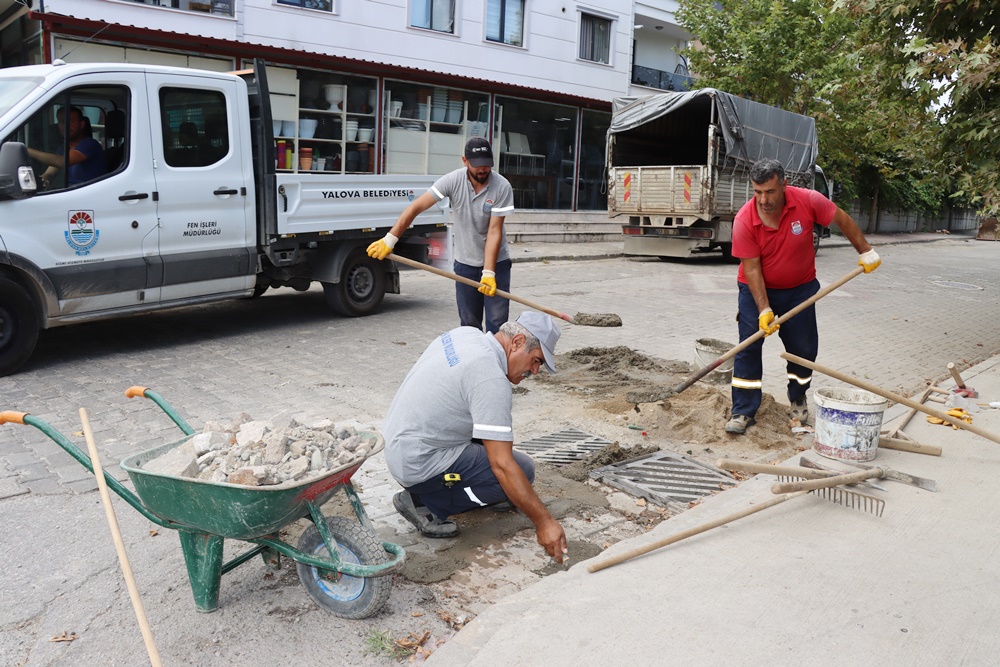 Yalova Belediyesi Fen İşleri Müdürlüğü ekipleri, şehir merkezinde yol ve kaldırım bakım, onarım çalışmalarına devam ediyor.