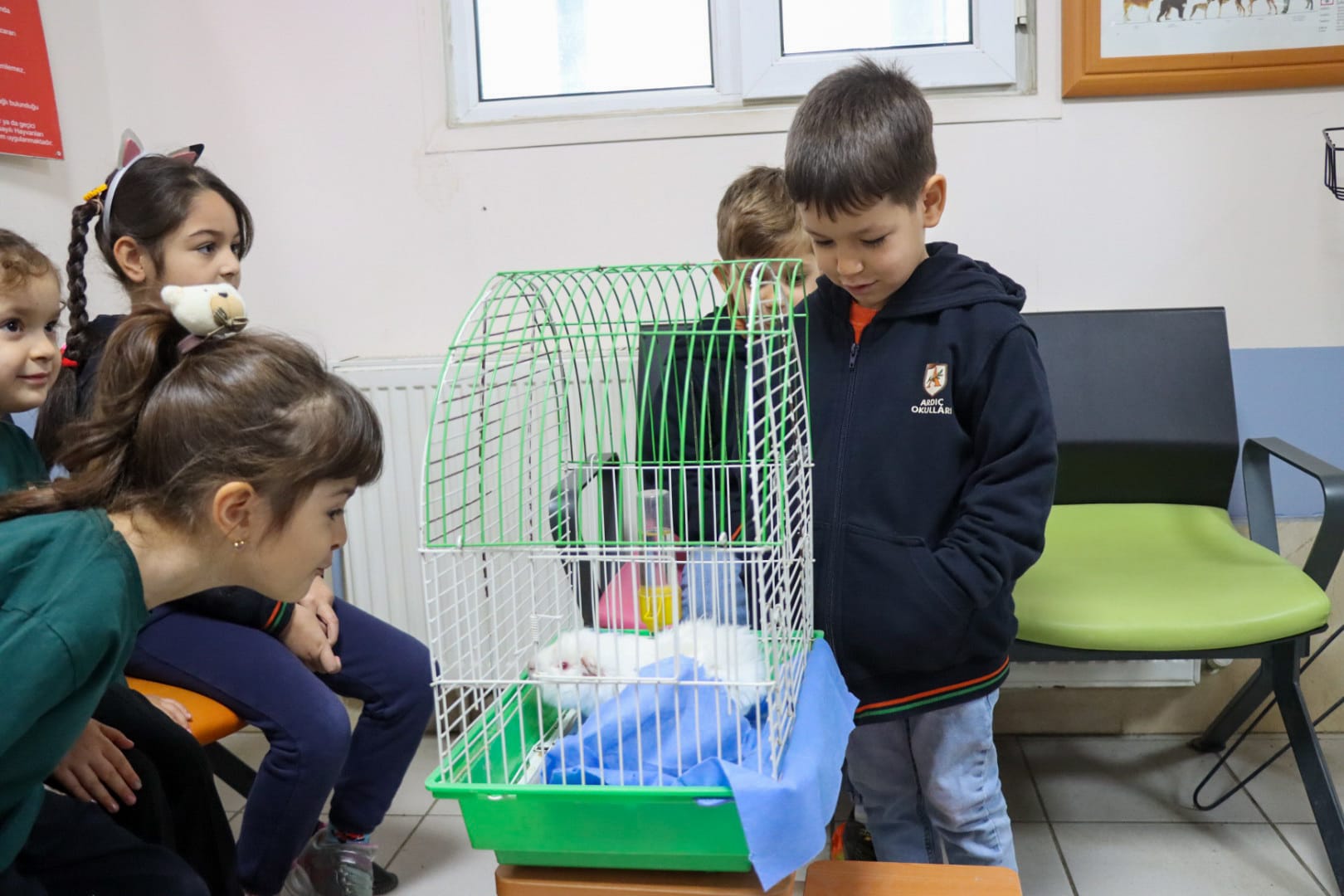 Merkezde görevli veteriner hekimler tarafından Ginepig’in sağlık durumu, bakım ihtiyaçları ve beslenme koşulları hakkında ayrıntılı bilgi alan öğrenciler, hayvan sevgisi ve sorumluluk bilincinin önemine dair keyifli bir sohbet gerçekleştirdi. Ziyaret sırasında öğrencilerin sevimli Ginepig ile kurduğu sıcak bağ ise görülmeye değerdi.