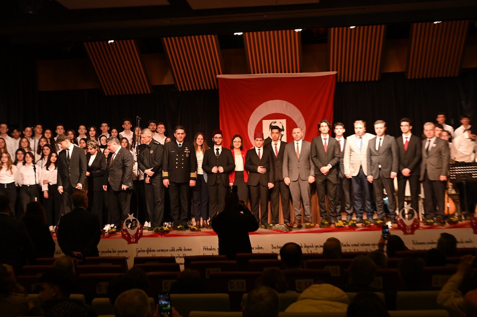 Raif Dinçkök Kültür Merkezi’ndeki program, saygı duruşunda bulunulması ve İstiklal Marşı’nın okunmasıyla başladı.