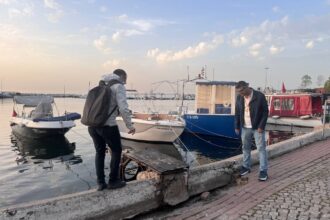 Mühendisler, balıkçı barınağındaki çökmeyi inceledi