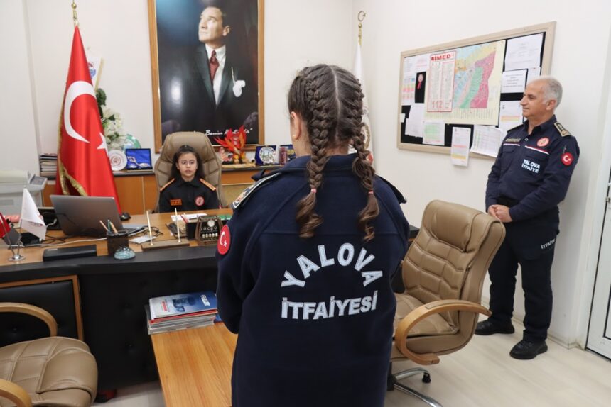 Gazi Mustafa Kemal Atatürk’ün, çocuklara armağan ettiği bu anlamdı günde temsili bir değişimde yaşandı. Yalova Belediyesi İtfaiye Müdürü Yaşar Dilmaç, görevini Liya Maviş Kumsal’a devretti. Ayrıca İtfaiye vardiya amirliğini ise Eslem Berra Şeker yaptı. Temsili görevde bulunan Liya, vardiya amiri olan Eslem’den günlük bilgileri alarak talimatlar verdi.