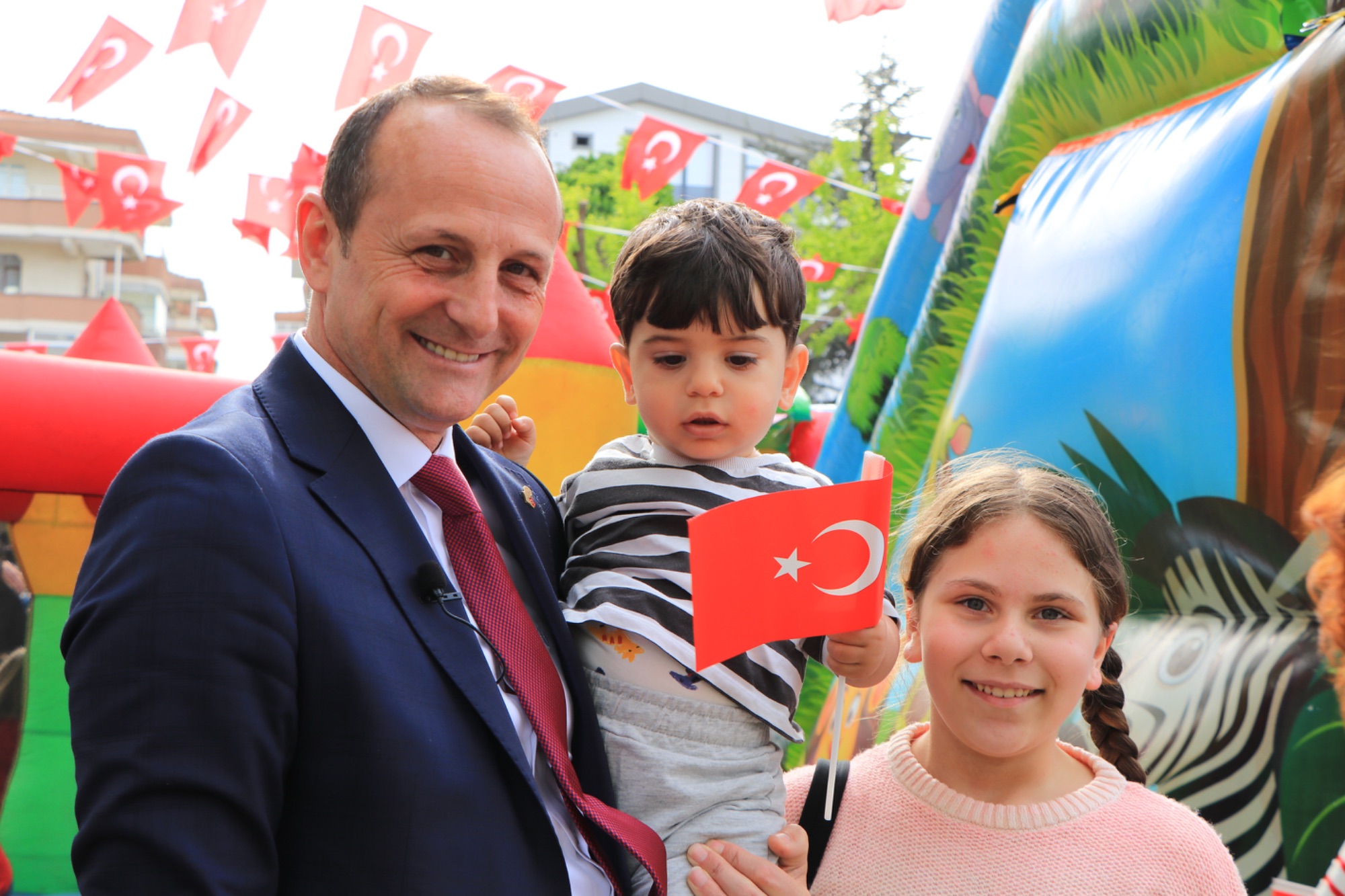 Çiftlikköy Belediyesi’nin 23 Nisan Ulusal Egemenlik ve Çocuk Bayramı dolayısıyla Çiftlikköy Mokamp alanında düzenlediği çocuk festivali büyük ilgi gördü. Gönüllerince eğlenip bayramın tadını çıkaran çocuklar, Çiftlikköy Belediye Başkanı Adil Yele’ye de yoğun ilgi gösterdi.