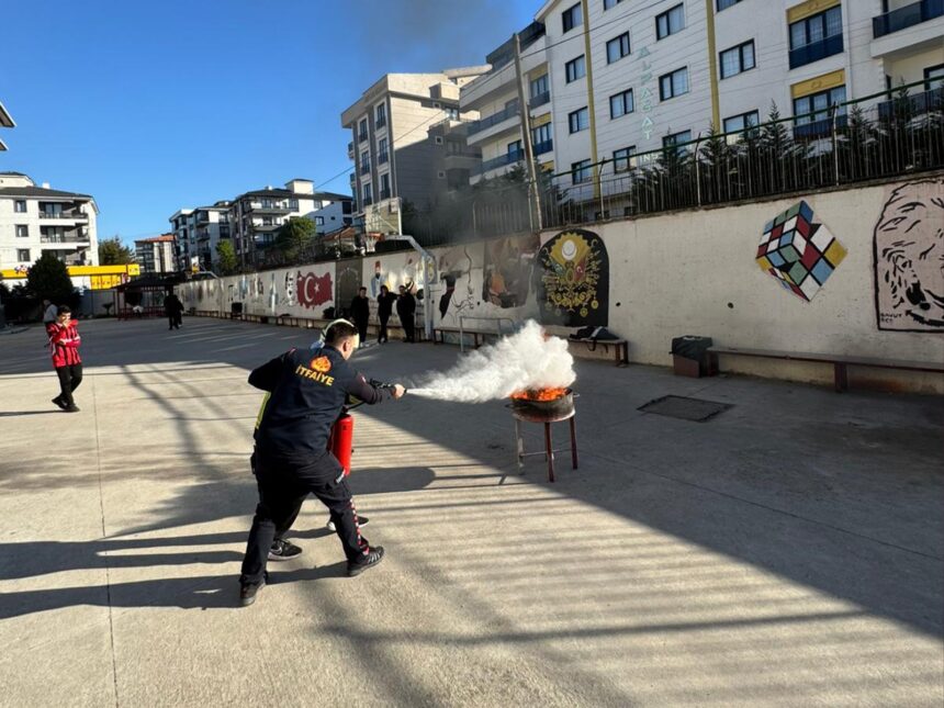 Çiftlikköy Belediyesi İtfaiye Müdürlüğü tarafından Çiftlikköy’deki 3 okulda öğrencilere temel yangın eğitimi verildi. İtfaiye Müdürlüğü personeli Mehmet Erdoğan tarafından verilen okullarda verilen eğitimlere katılan öğrenciler, önce teorik eğitim aldılar, ardından koruyucu giysileri giyerek çıkarılan suni yangını kendileri söndürdüler.