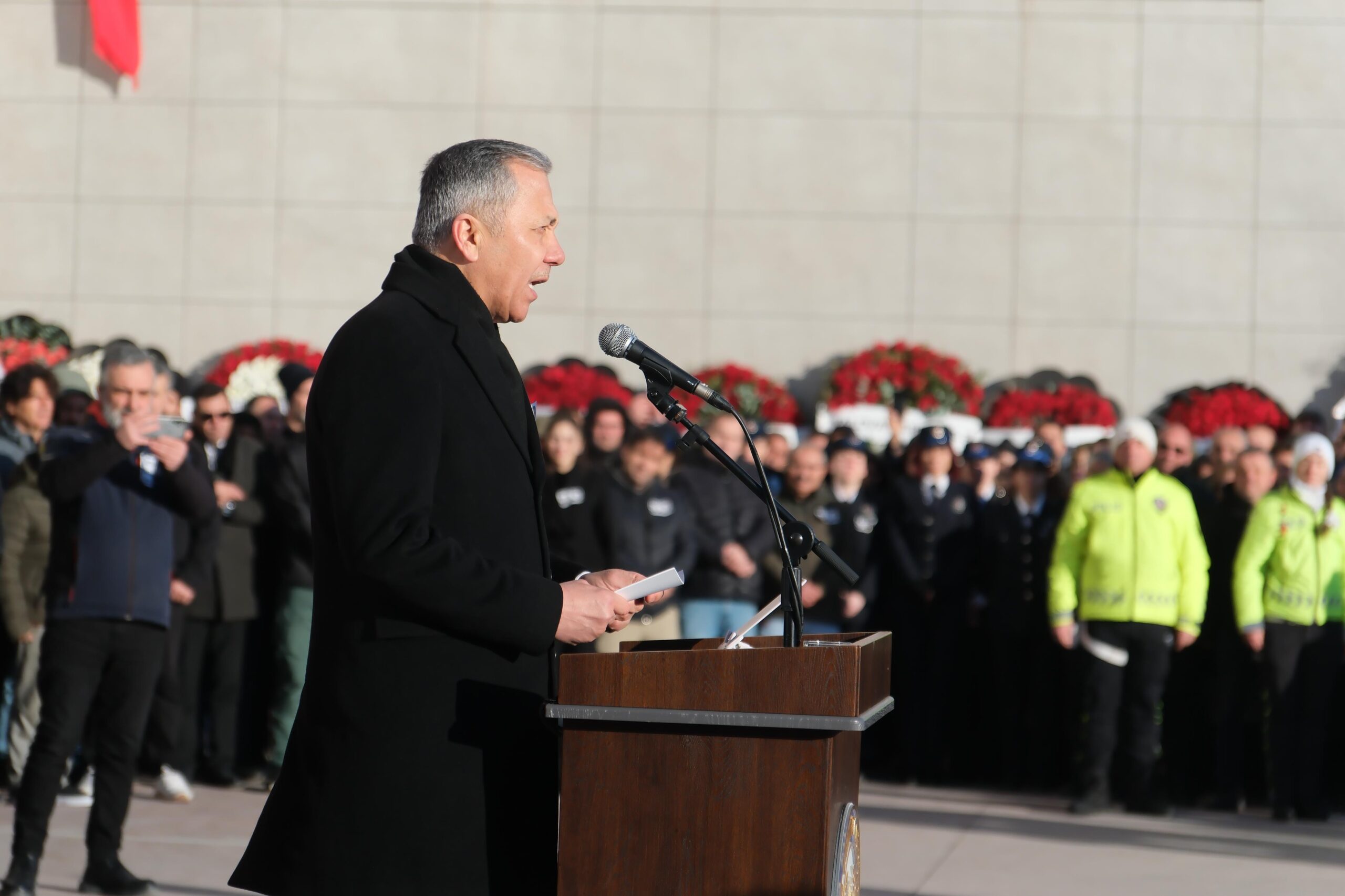 Konuşmasında emniyet teşkilatına da seslenen Yerlikaya, “Kahraman polislerim bugün uğurladığımız silah arkadaşlarınızla birlikte sizler kadın ve çocukları kendine kalkan yapan hain teröristlerin karşısında sabırla, azimle, dirayetle dimdik durdunuz. Milletimize pusu kuranların tuzaklarını başlarına yıktınız. Sizlerin asaleti ve kahramanlığı sadece yüreğinizde taşıdığınız cesarette değil; vicdanınızda, merhametinizde ve insanlık onurunuzda saklıdır. Allah hepinizden razı olsun. Unutmayın; üniformanızı kuşandığınız her an en ücra köyümüzdeki dumanı tüten her ocakta yükselen dualar sizler içindir” diye konuştu.