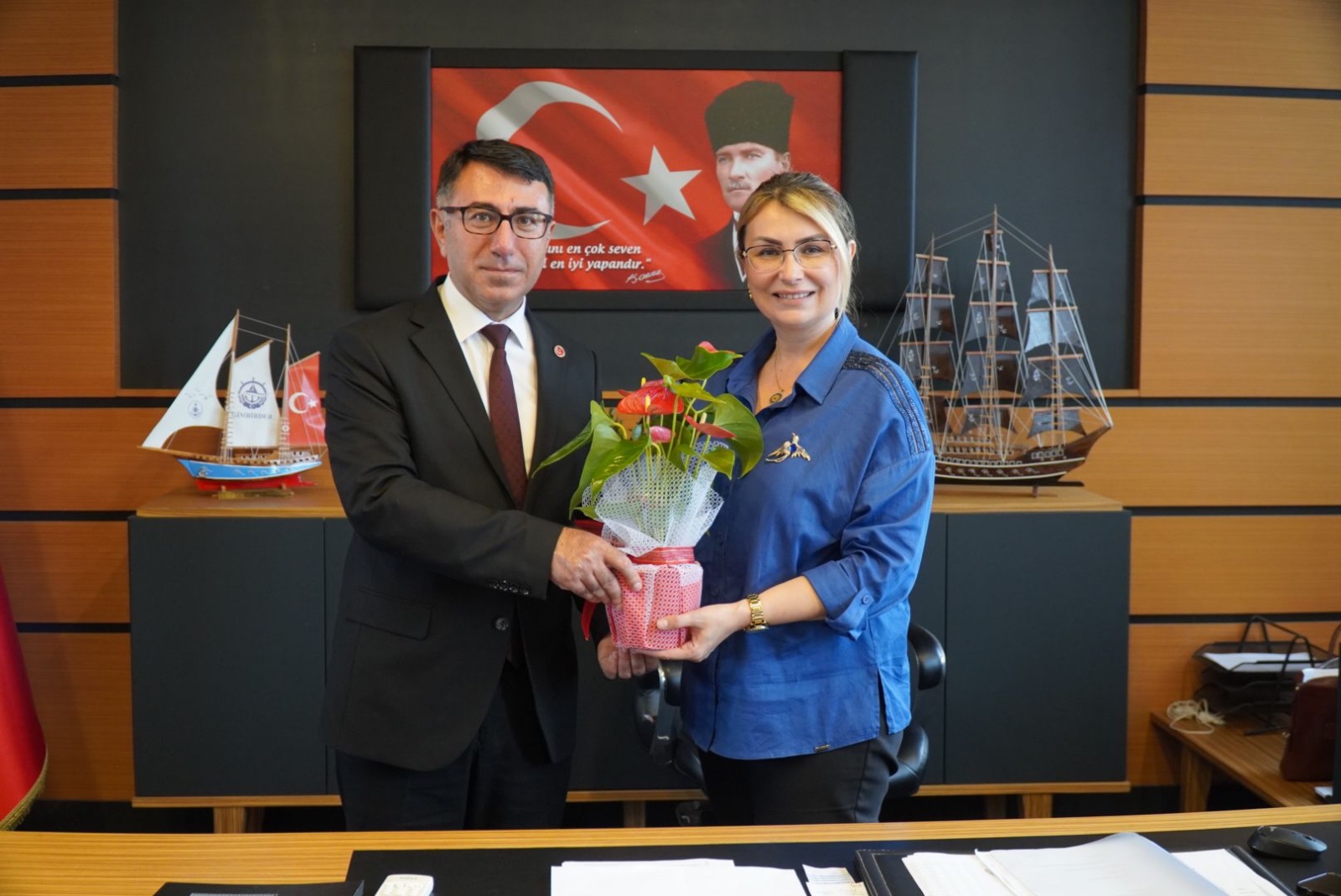 TEMAD Yalova Şube Başkanı Erdoğan Yıldız görüşme sonunda Başkan Fazlaca’ya çiçek takdim etti.