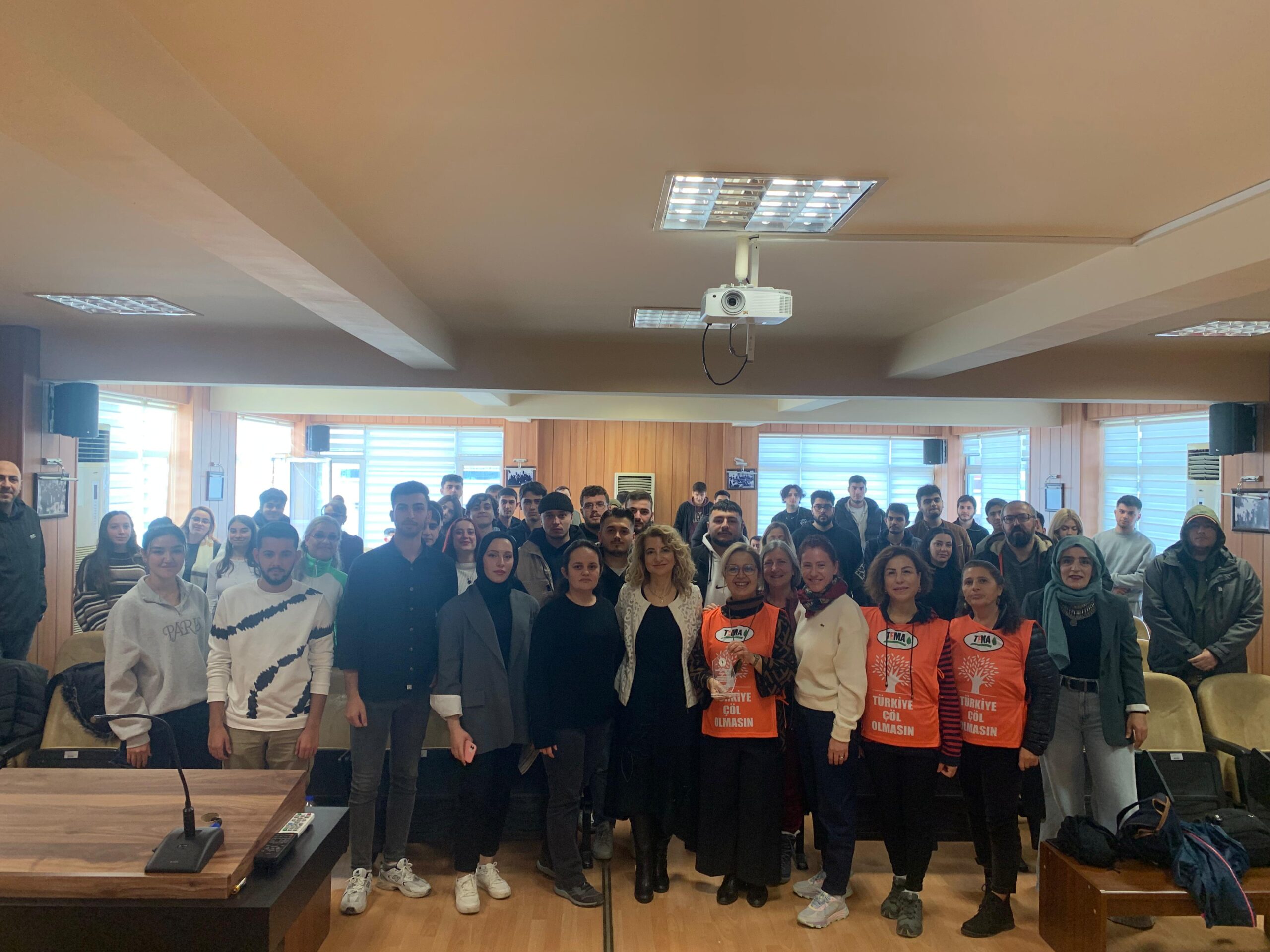 Etkinlikte Doç. Dr. Gül Yücel daveti ile Öğretim Görevlisi Merve Tanfer, Öğretim Görevlisi Füsün Köksal ile Öğretim Görevlisi Hakan Kahramaner ve bölüm öğrencileri katıldılar. Açılış konuşması Doç. Dr. Gül Yücel tarafından yapıldı. Sunuma büyük ilgi gösteren öğrencilere fidan dikimi, çevre temizliği ve savunuculuk ile ilgili çalışmalar hakkında bilgi veren İl Temsilcisi Arzu Demir, gençlerden toprağın ve doğal varlıkların korunması konusunda oldukça hassas olmalarını istedi.  Demir, toplantıya iştirak eden bölüm öğrencilerine Yalova’da oluşturulacak Hayrettin Karaca Hatıra Ormanı’na sundukları katkıdan dolayı teşekkür etti.