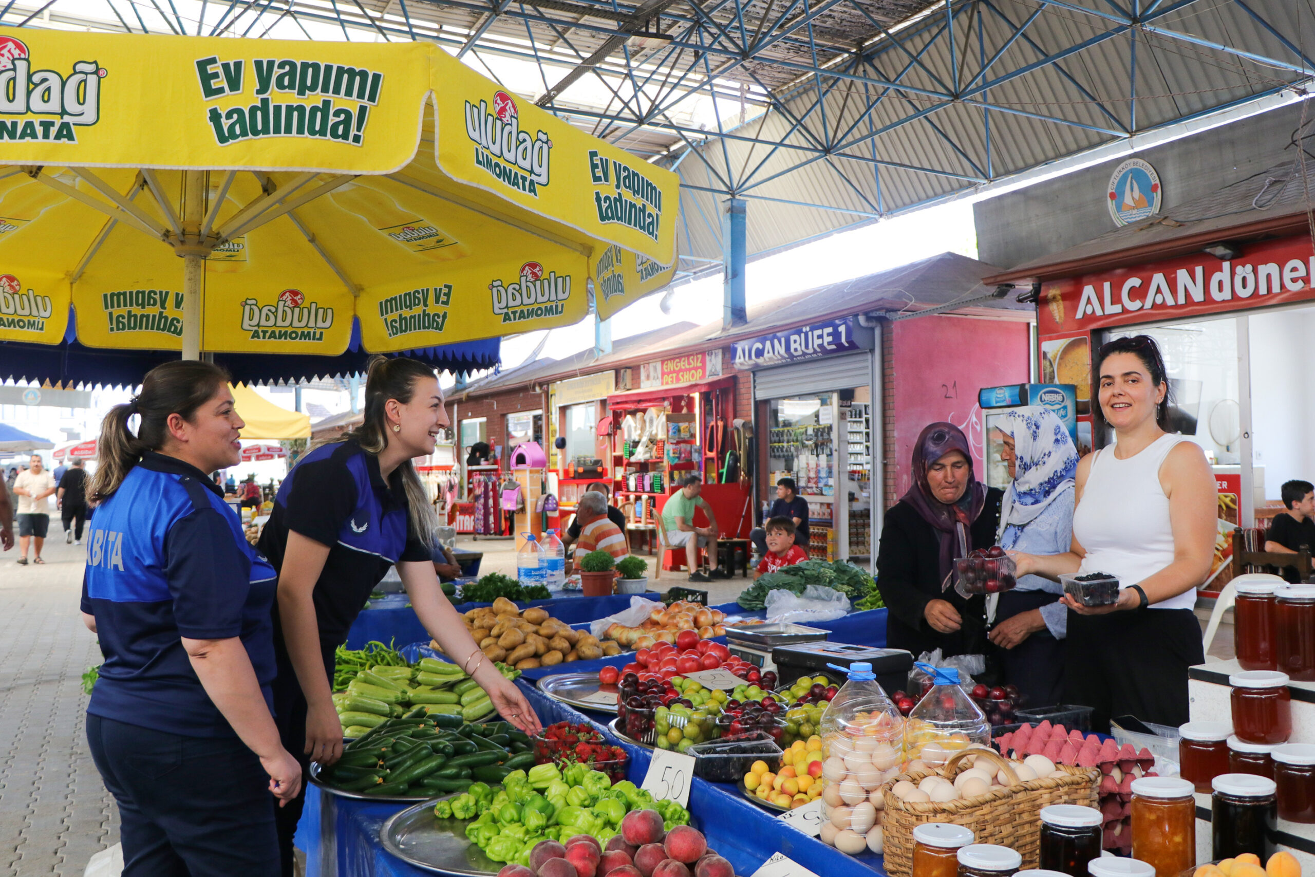 Dereköy elmasından Laledere kirazına Çiftlikköy’ün tüm köylerinden gelen ve dalından yeni koparılmış pek çok taze ürünün yer aldığı üretici pazarında etiket ve terazi denetimleri yapan ekipler, kurallara uymayan üretici pazarcılarına da uyarılarda bulundu.