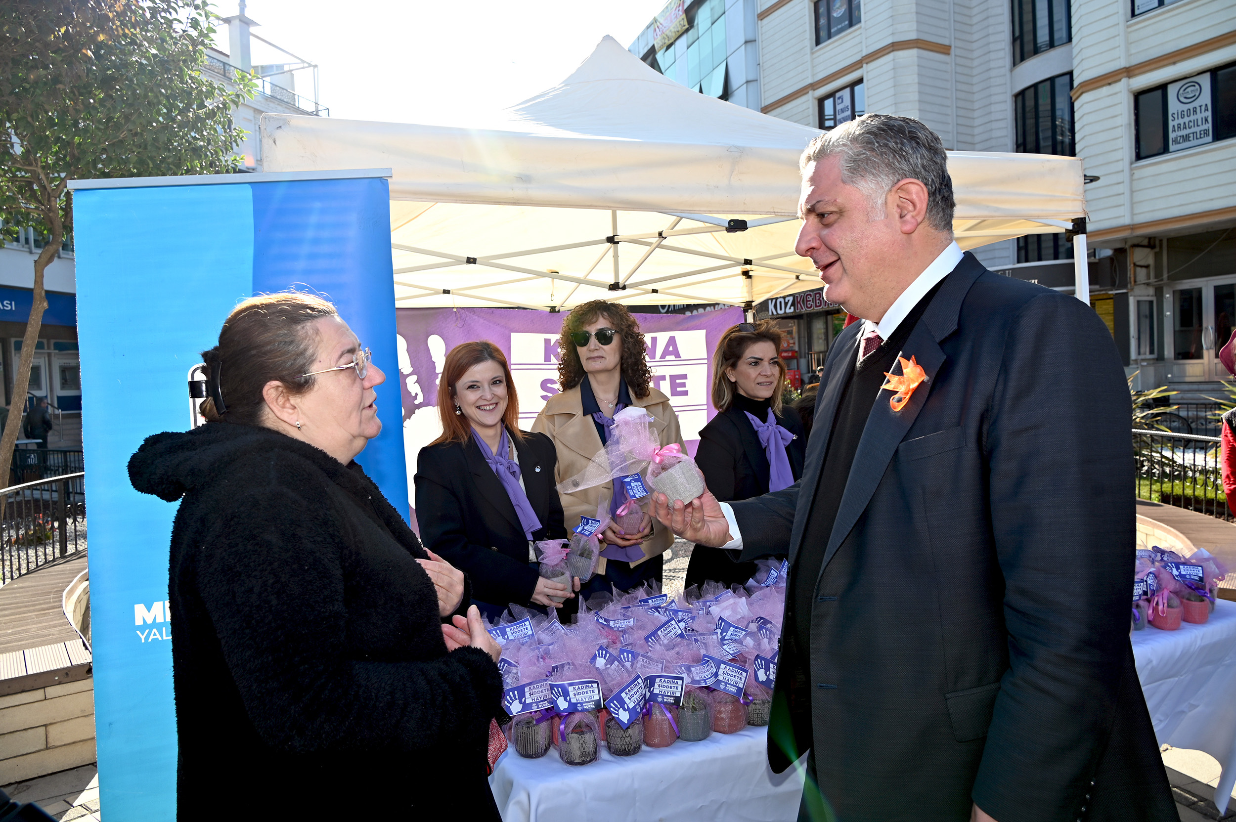 Yalova Belediyesi, 25 Kasım Kadına Yönelik Şiddete Karşı Uluslararası Mücadele Günü kapsamında farkındalık oluşturmak amacıyla anlamlı bir etkinliğe imza attı. Uğur Mumcu Kültür Merkezi önünde kurulan stantta, günün anısına kadınlara çiçek hediye edildi.