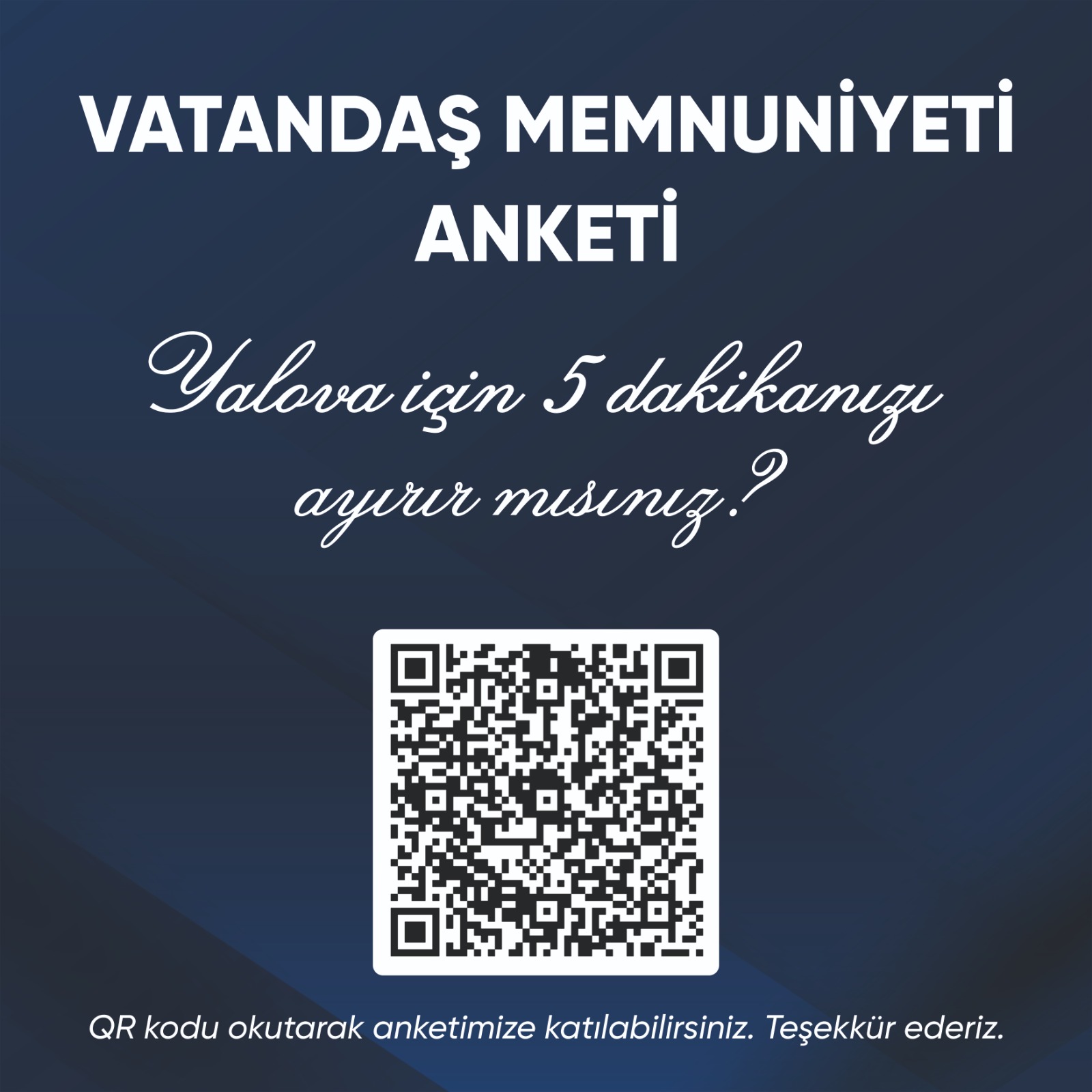 İnternet sitesine giren vatandaşlar, Başkan Gürel’in imzası ile “Yalova için 5 dakikanızı ayırır mısınız?” sorusu yöneltilerek anket çalışmasına yönlendiriliyor. QR kod okutularak veya görsele tıklayarak ankete katılabilen vatandaşlara da seslenen Başkan Gürel, “Değerli Yalova Halkı, Yalova Belediyesi olarak sizlere daha iyi hizmet verebilmek ve 2025-2029 stratejik plan çalışmalarında kullanılmak üzere görüşlerinizi önemsiyoruz. Bu anketle, belediyemizin faaliyet hizmetlerini değerlendirebilir, beklenti ve önerilerinizi bizlerle paylaşabilirsiniz. Katılımınız, hizmet kalitemizi artırmamızda bize yol gösterecektir. Anketimize zaman ayırdığınız için teşekkür ederiz” dedi.