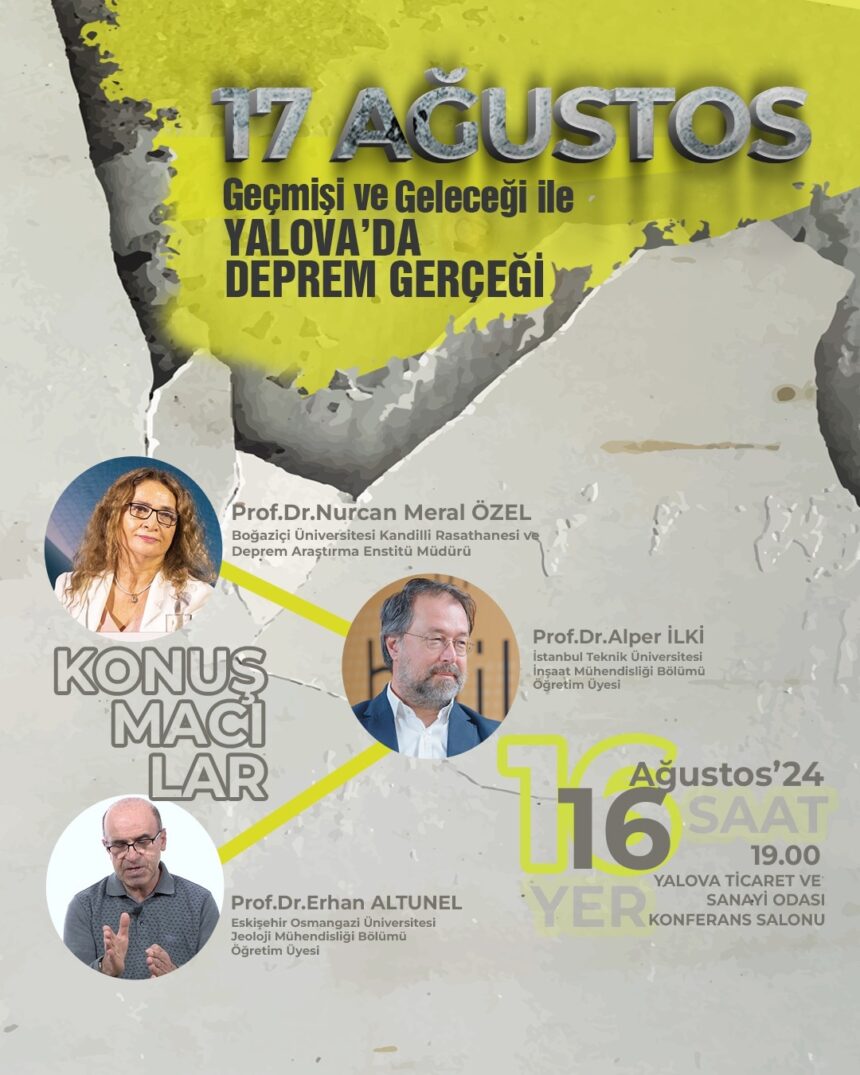 Yalova Belediyesi, Yalova Valiliği, Yalova Ticaret ve Sanayi Odası, Yalova Üniversitesi ve İnşaat Mühendisleri Odası iş birliği ile düzenlenen konferans, 16 Ağustos 2024 Cuma günü saat 19:00’da Yalova Ticaret ve Sanayi Odası Konferans Salonu’nda gerçekleştirilecek.