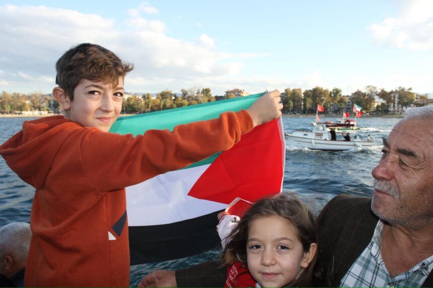 Daha sonra Türk ve Filistin bayraklarıyla donatılan gemi ve tekneler, Marmara Denizi’ne açılarak tur attı.